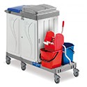 Le chariot de ménage et de lavage ARIANE 225 de FILMOP est un chariot complet avec embase courte pour un encombrement minimum. Il est préconisé pour l’entretien de locaux (ramassage déchets et entretien des sols).