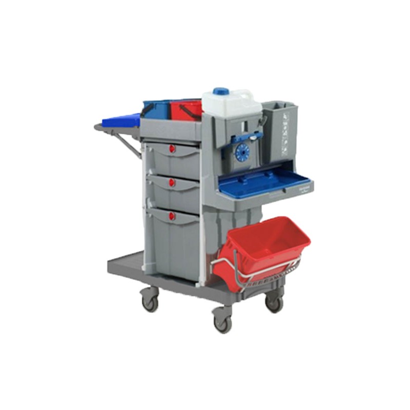 Chariot pour le lavage des sols et des surfaces hautes avec dosage mécanique d’imprégnation EQUODOSE.
