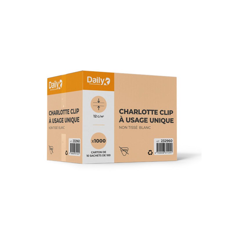 Charlotte à clip usage unique non tissée blanche 10X100 - Ct 1000
